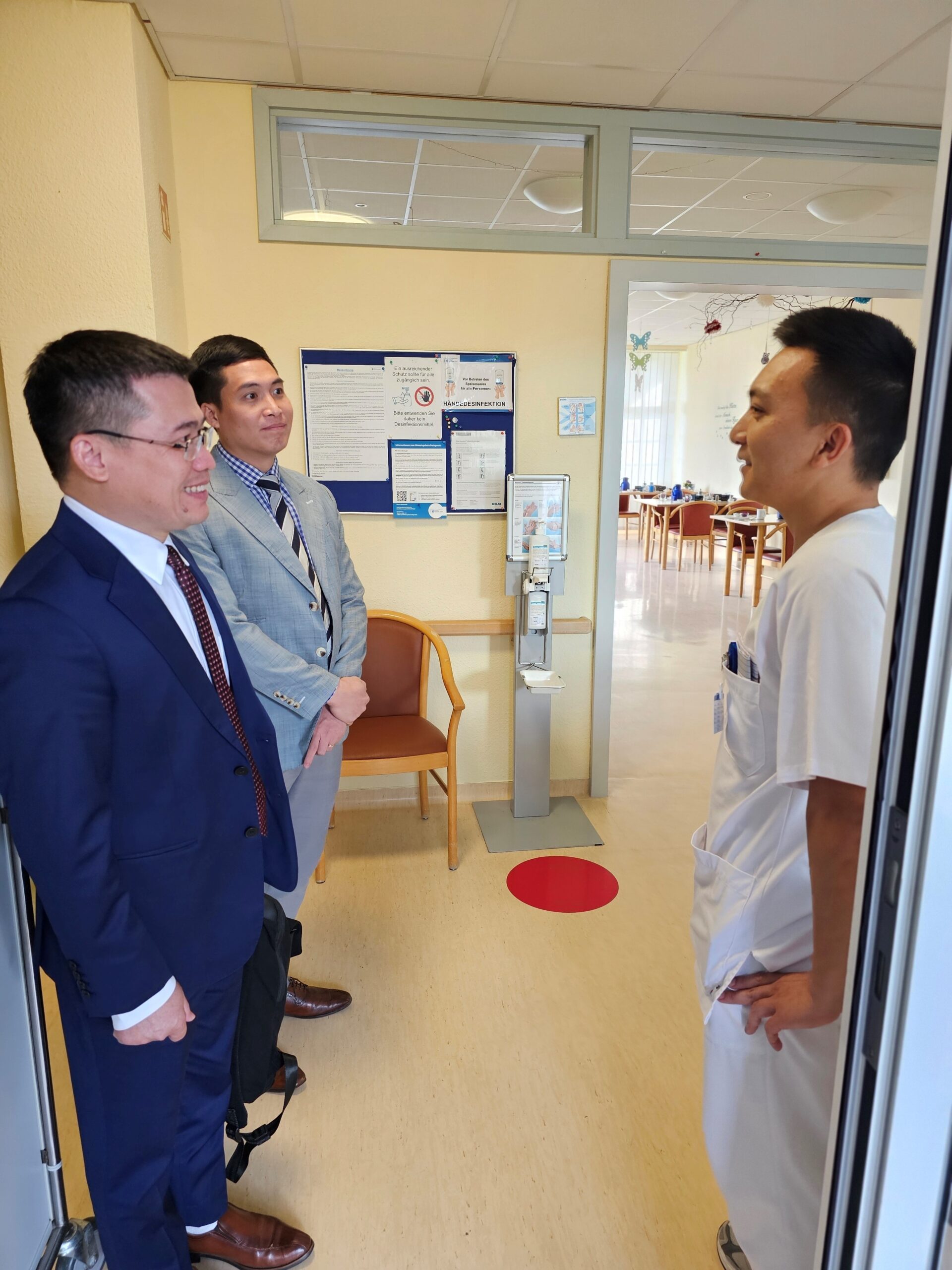 Am 12.09.2024 besuchten die MEDIGREIF Parkklinik in Greifswald Vertreter der Firma Quinn aus Hanoi. Herr Dung, der Firmengründer und Inhaber, und sein Assistent waren gerade auf einer Europatour und hatten auf der Rückreise von Dänemark die Gelegenheit, unseren Campus persönlich kennenzulernen.