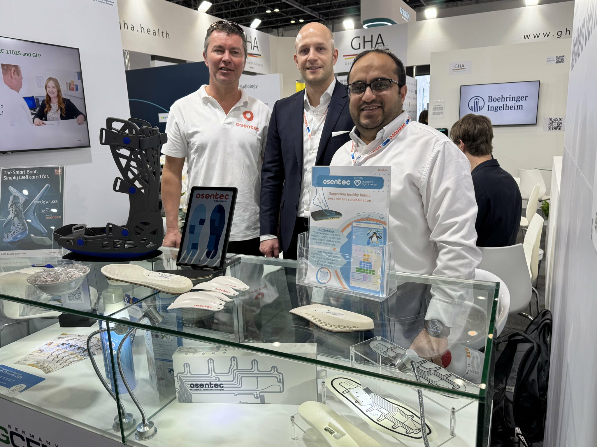 Dank unserer großartigen Kooperationspartner von Osentec GmbH hatten wir die einzigartige Möglichkeit, uns mit einem eigenen Aufsteller zu präsentieren – und das zusätzlich zu den herausragenden smarten Einlegesohlen von Osentec.