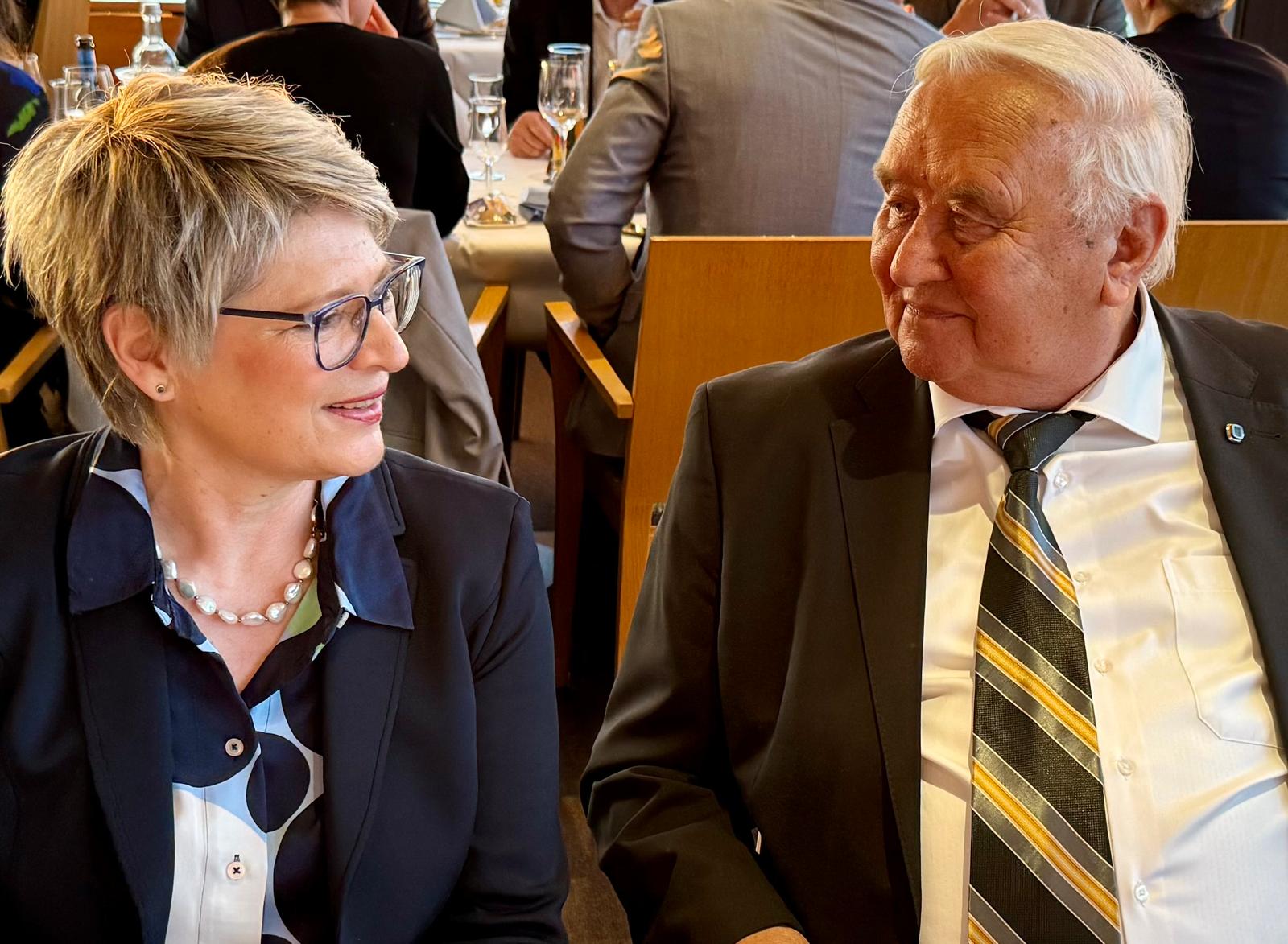 Auch die Themen Effizienz des ärztlichen Bereitschaftsdienstes und die ab 2026 im neuen Finanzierungsmodell zum Tragen kommenden einrichtungsspezifischen Komponenten waren Teil der Gespräche. Wir werden versuchen, in Berlin gemeinsam mit Frau Präsidentin Roßbach und Frau Direktorin Gross den Gedankenaustausch fortzuführen. Am zweiten Konferenztag konnte unsere Unternehmensgruppe eine Podiumsdiskussion gemeinsam und aktiv mitgestalten. Hierbei ging es um die Frage: Wie füllen wir die Finanzlöcher in der Sozialversicherung? Wie finanzieren wir Rente, Gesundheit und Pflege in der Zukunft?