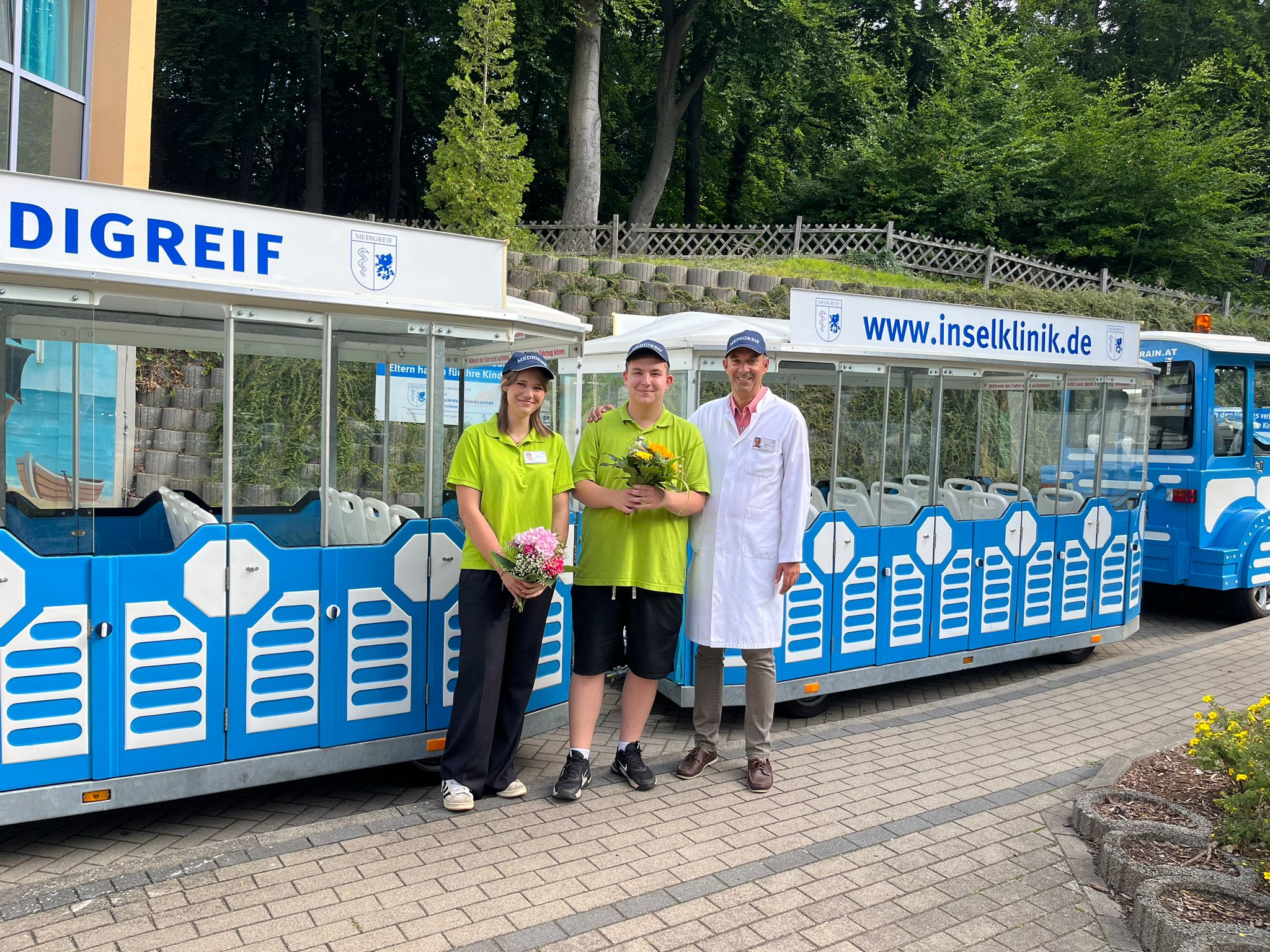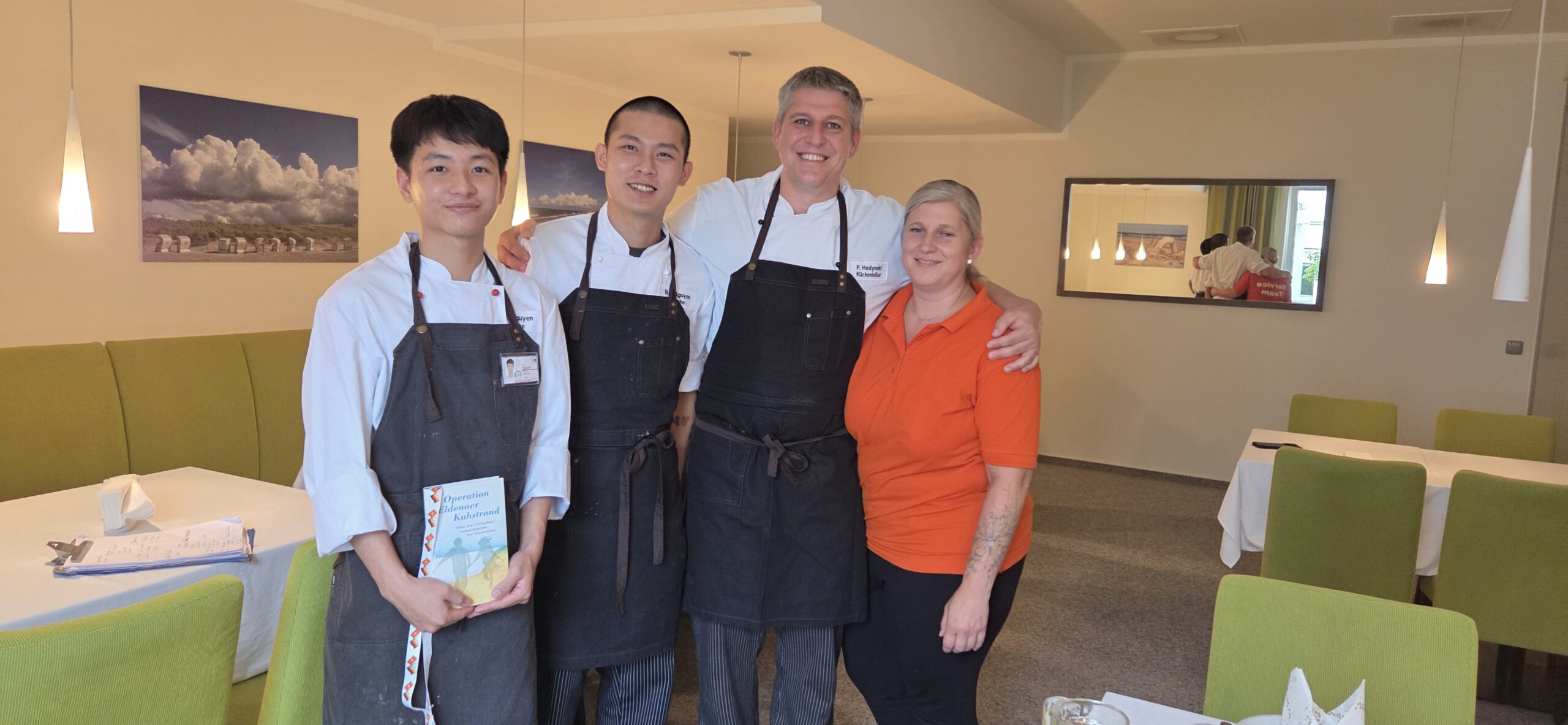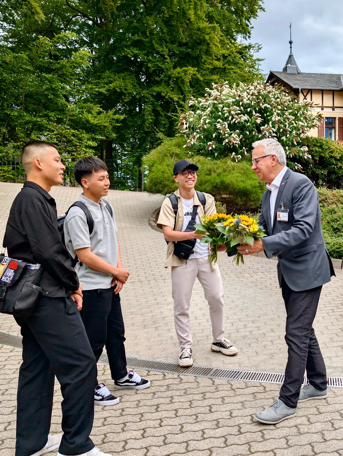 Am 6. August 2025 wurden am Standort Heringsdorf in den Inselkliniken vier Azubis herzlich willkommen geheißen, zwei Auszubildende aus Vietnam (Fachkraft Küche bzw. Koch) und zwei Auszubildende aus Deutschland (staatlich anerkannte Erzieher). Und auch an der Parkklinik in Greifswald wurde erstmals ein Azubi aus Vietnam (Fachkraft Küche bzw. Koch) begrüßt. Die Vermittlung der drei Vietnamesen wurde durch den unternehmenseigenen Personaldienstleister GerViet realisiert. Nach einer langen und anstrengenden Reise – teilweise über 23 Stunden – waren die drei jungen Männer glücklich, endlich angekommen zu sein. Nach der Abholung am Flughafen BER in Berlin-Schönefeld durch Ulf Mauderer, Geschäftsführer der MEDIGREIF GerViet GmbH, wurden alle durch Vorstand Dr. Stefan Rudolph und Vertreterinnen der Inselkliniken persönlich, herzlich begrüßt. Prof. Dr. Schiel, Ärztlicher Direktor am Inselklinikum, begrüßte, die beiden Azubis aus Deutschland am „Haus Gothensee“.