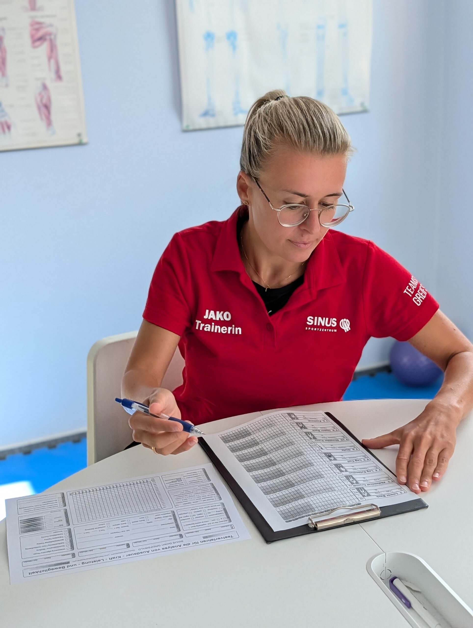 Als ausgebildete Fitnesstrainerin bin ich die Abteilungsleiterin für den Kursapparat, gebe selber Sportkurse, schreibe Trainingspläne, verwalte unsere Mitglieder, manage das Kassensystem und unterstütze Mike bei der Buchhaltung. Seit diesem Jahr bin ich Fitnessfachwirtin und habe meinen Ausbilderschein gemacht, damit wir in Zukunft im SINUS direkt ausbilden können. Darauf freue ich mich sehr.