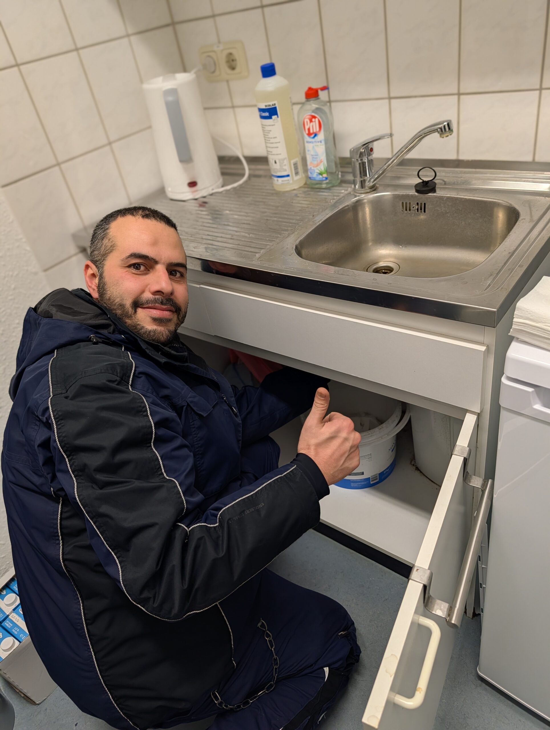 „Während des Interviews mit Anas in unserer Abteilung, ging der Wasseranschluss in der Küche kaputt. Ein Glück war er genau zur richtigen Zeit am richtigen Ort, holte das nötige Werkzeug und konnte den Fehler beheben – ein verrückter und auch schöner Zufall.“