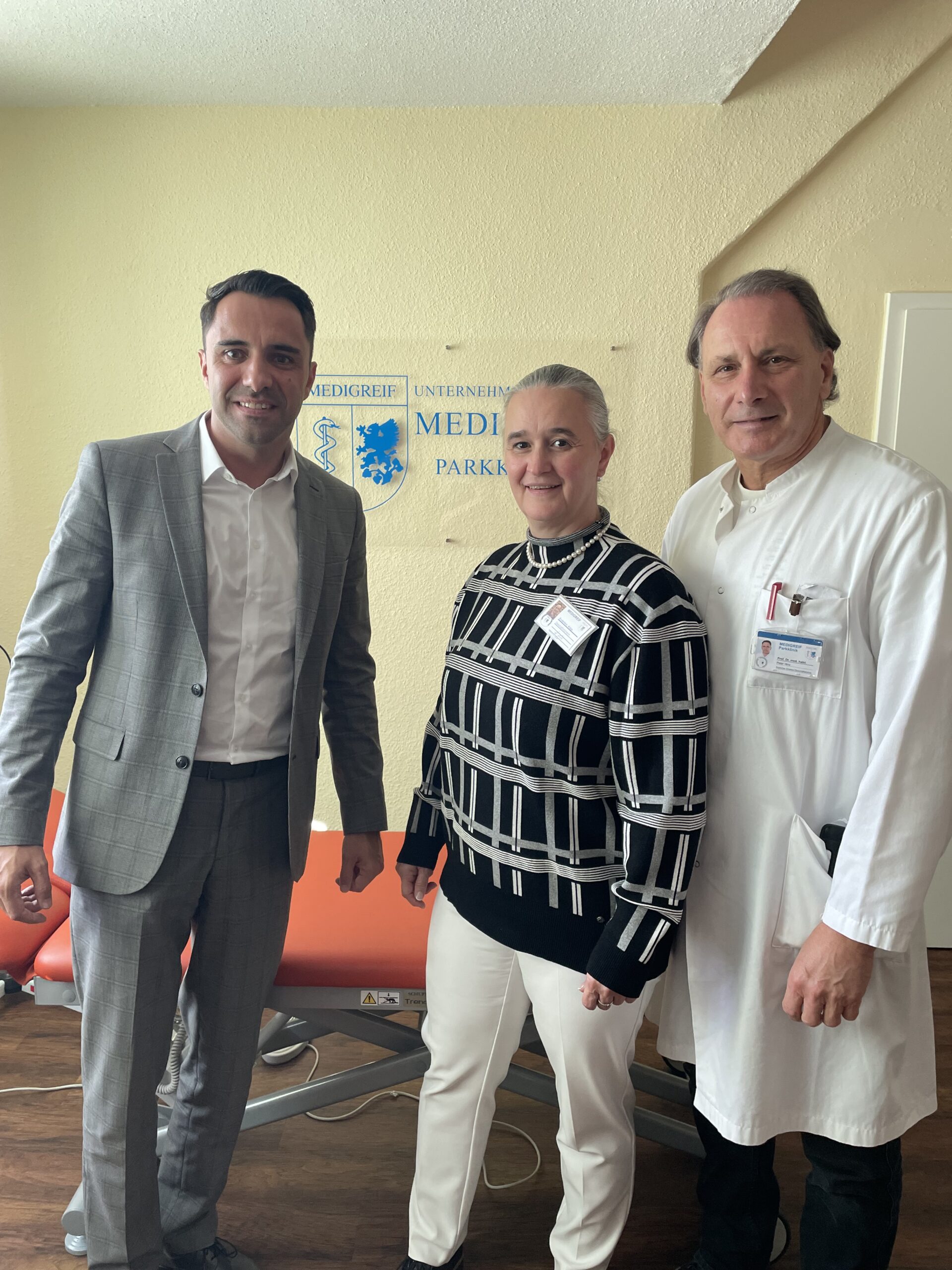 Manchmal entstehen gute Gespräche ganz spontan – so auch der jüngste Besuch von Daniel Peters, dem Landesvorsitzenden der CDU MV, bei uns in der Parkklinik. Bei einem Treffen der Unternehmerverbände 2025 in Warnemünde hatte Frau Enderlein die Gelegenheit, Herrn Peters kurz auf unsere Arbeit, unsere Standorte und die Bedeutung unserer Teams für die regionale Gesundheitsversorgung aufmerksam zu machen. Aus dieser ungezwungenen Begegnung entstand eine spontane Einladung nach Greifswald, die er nur kurze Zeit später wahrnahm.
